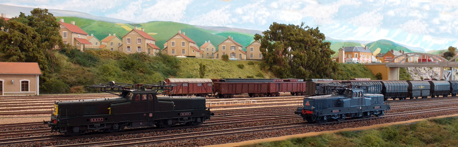 Les BB12000 ont longtemps été basées à Mohon dans les Ardennes et elles ont sillonné durant de longues décennies la ligne Valenciennes-Thionville.Voici 2 exemplaires sur le réseau fixe du club.