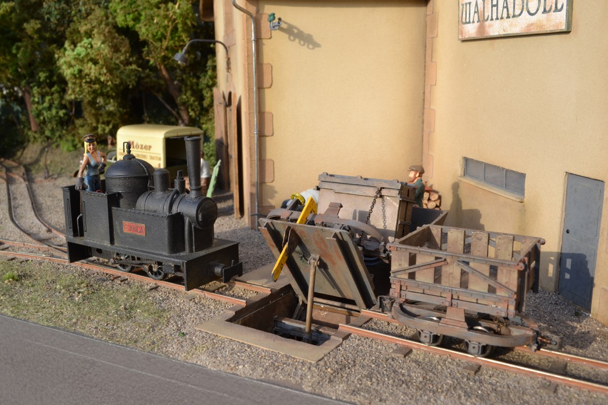 Les wagonnets sont des prototypes faits à partir des bennes KBScale. Les choux transportés sont des moulages résine en série de pièces Scenic Express.