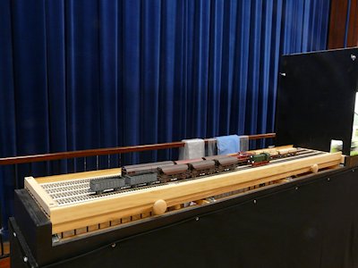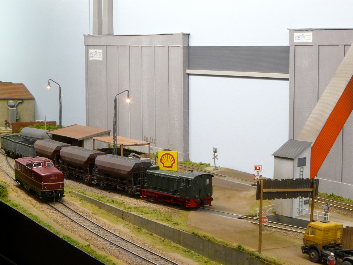 Il s'agit d'un réseau de manœuvres avec des locomotives et des wagons équipés d'attelage Kadee. L'alimentation est digitale et les aiguillages sont maintenant commandées électriquement. Les régulateurs sont le plus souvent confiés aux visiteurs de l'exposition.