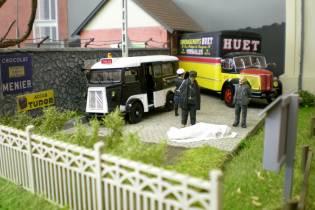 La menuiserie est en MDF de 10mm, la voie provient de chez PECO. Le décor est de construction intégrale, souvent à base de CLAP, agrémenté d’accessoires du commerce (ABE, Train Magique, etc.). Les véhicules routiers proviennent de collections en vente chez les marchands de journaux.
