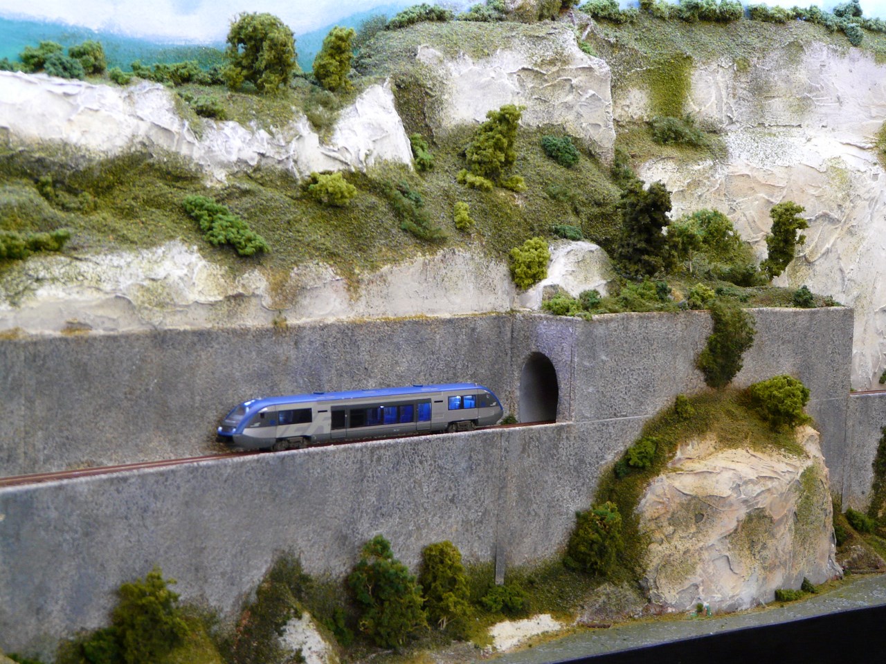 Les reliefs sont constitués de polystyrène recouvert de bande plâtrée et de MAP. Les ouvrages d'art sont réalisés en carton habillé de textures adhésives REDUTEX.