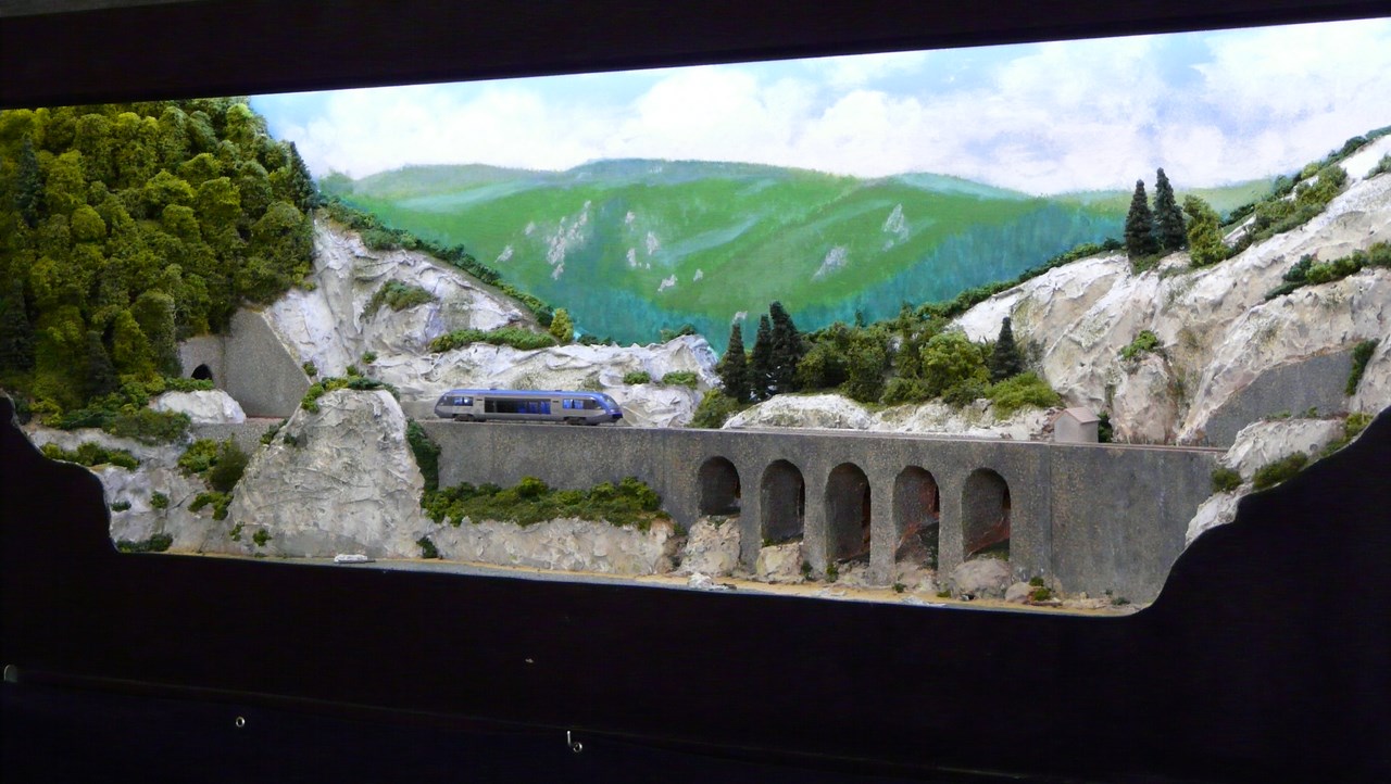 La partie reproduite s'inspire de la haute vallée de l'Allier, aux confins des départements de la Haute-Loire, du Cantal et de la Lozère, entre Chapeauroux et Langogne. Les bâtisseurs du XIXe siècle ont dû tailler la roche et réaliser de nombreux ouvrages d'art (ponts, viaducs et murs de soutènement).