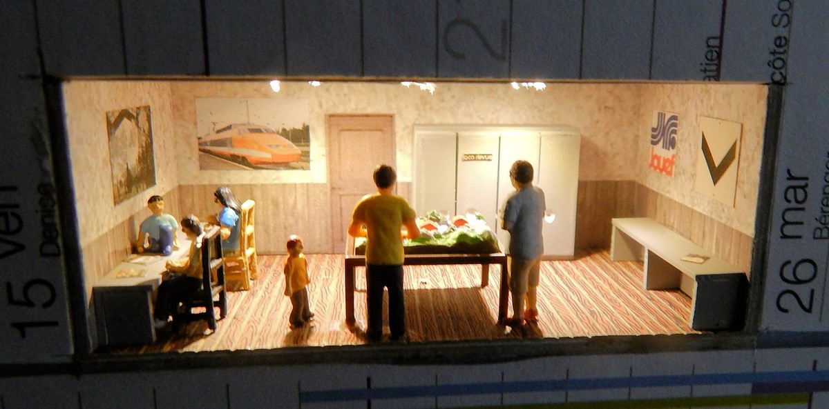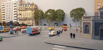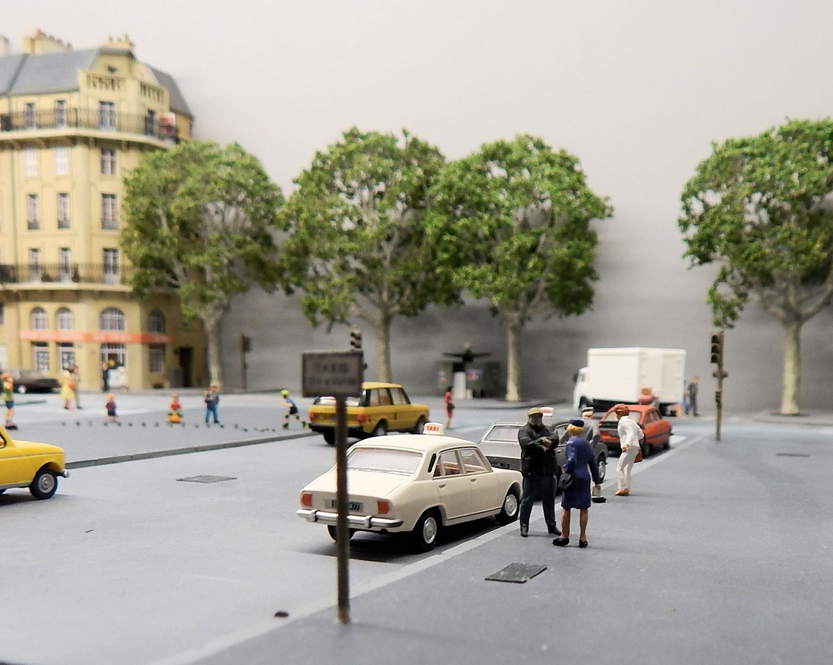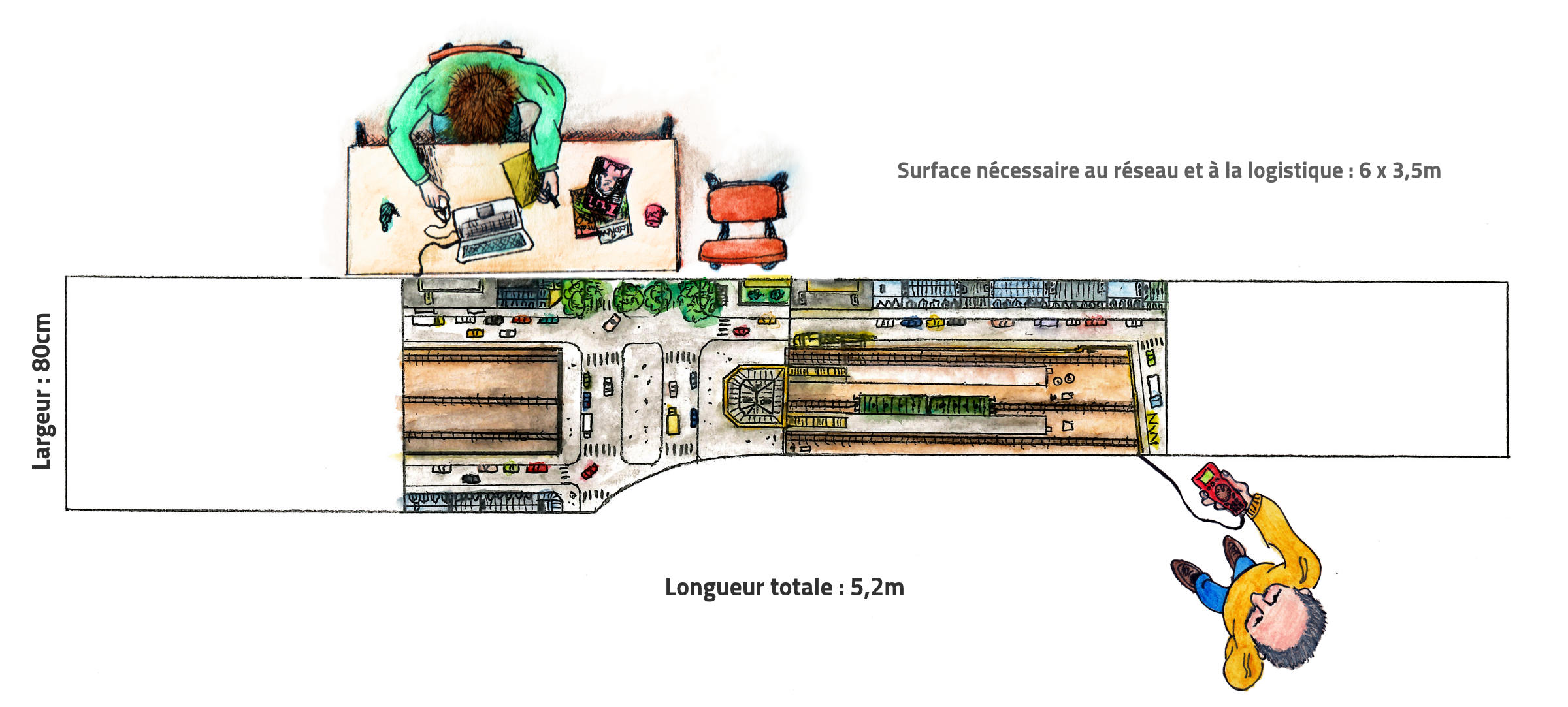 Le décor fait appel à un mélange de techniques classiques (construction d'immeubles en carton ou kits plastique) et plus récentes comme la découpe laser (Bâtiment Voyageurs, immeubles, murs de soutènement, pont métallique, grilles métalliques, etc.) la photo-découpe (plaques d'égout, grilles d'arbres) ou l'impression 3D (3ème rail, colonne Morris, enseigne de métro, etc.).